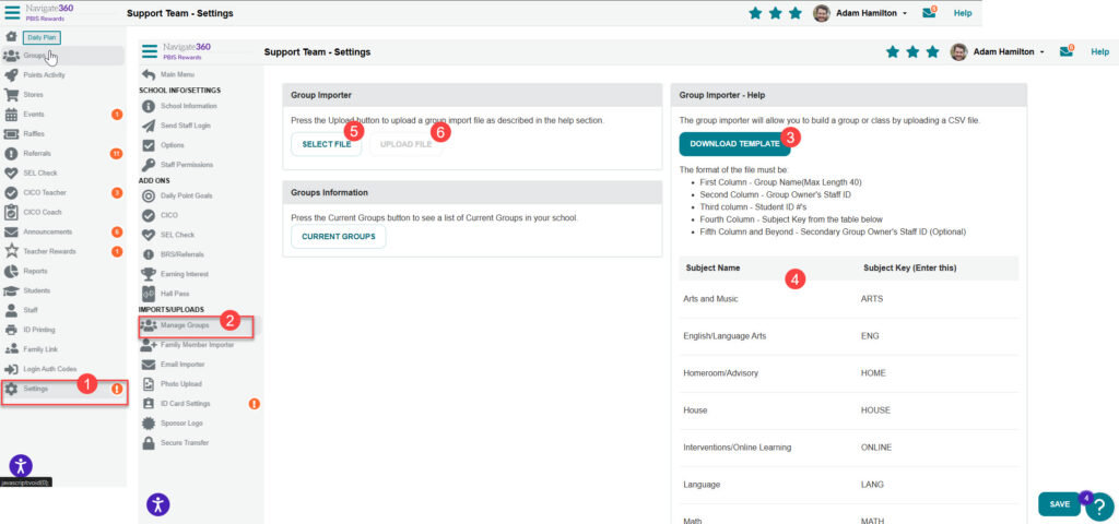 An Admin in PBIS Rewards can create groups using a spreadsheet upload.