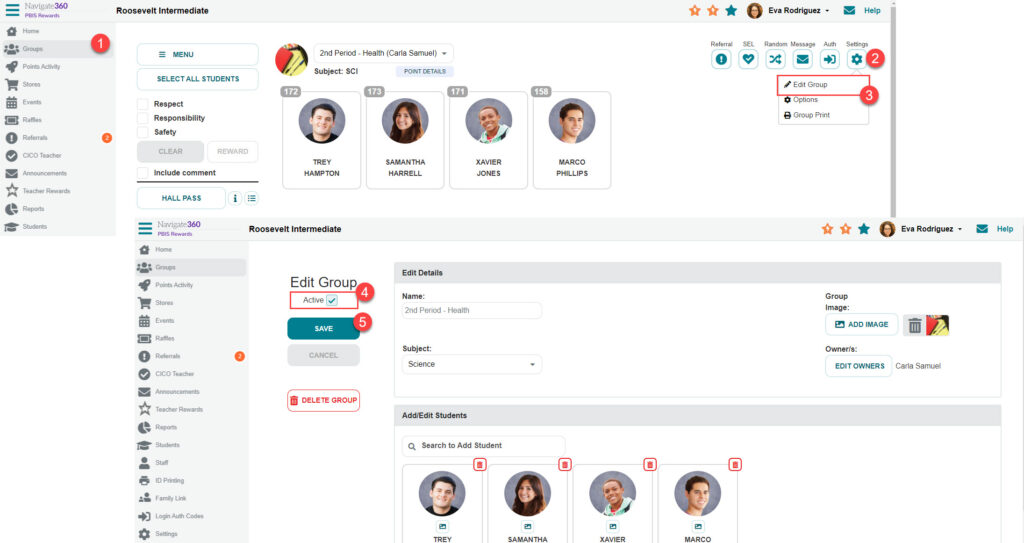 - Choose the “Edit Group” tab from the “Settings” drop down menu.