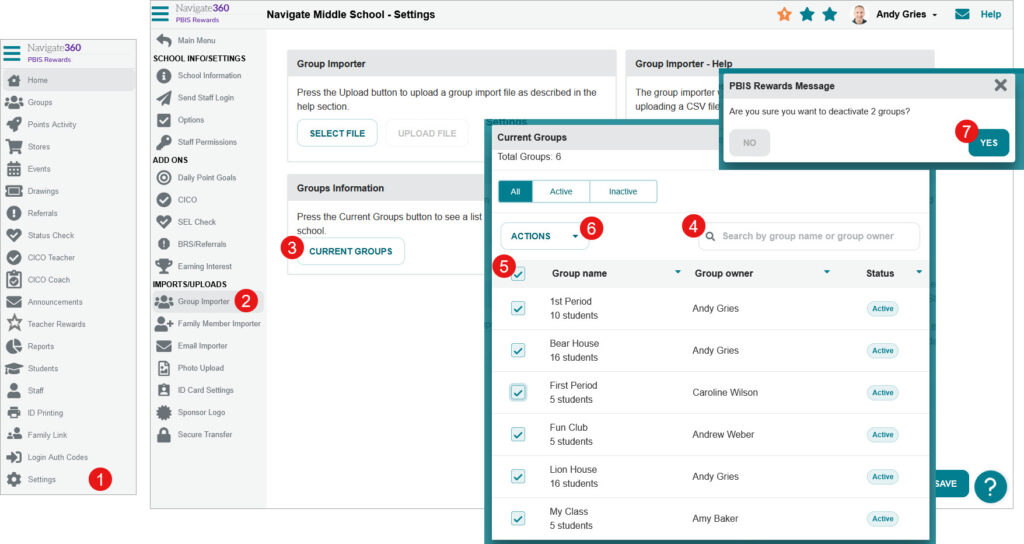 - Click the select all checkbox (deselect any groups that should remain inactive).